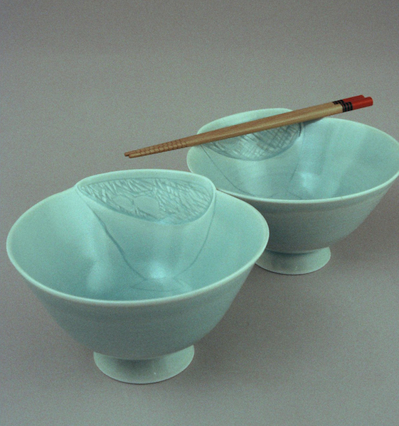 Aylmer Minigallery Carved HH Celadon Pho soup bowls. HH Celadon bowl with carved and sprigged tulips. Fluted celadon bowl. 35cm wide. Tall sided HH Celadon bowl. Fluted sides. 20 cm high.